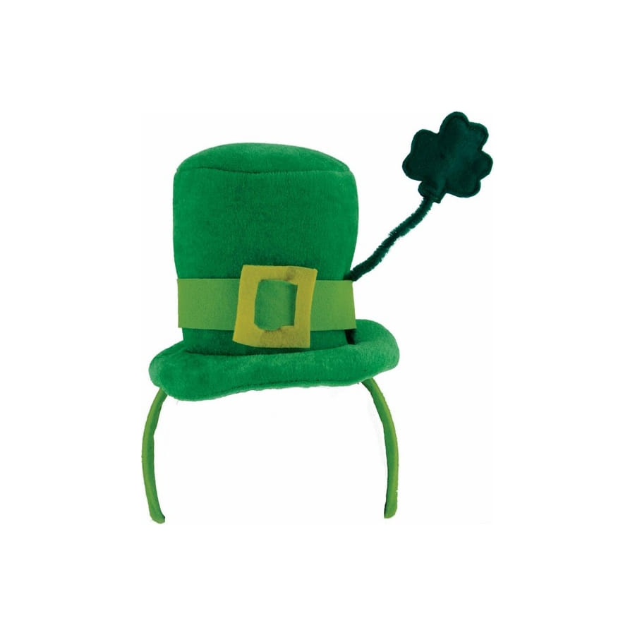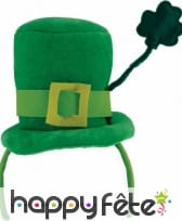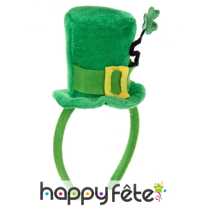 Voici un petit haut de forme Saint Patrick sur serre tête, un accessoire de premier choix pour compléter votre déguisement de lutin.