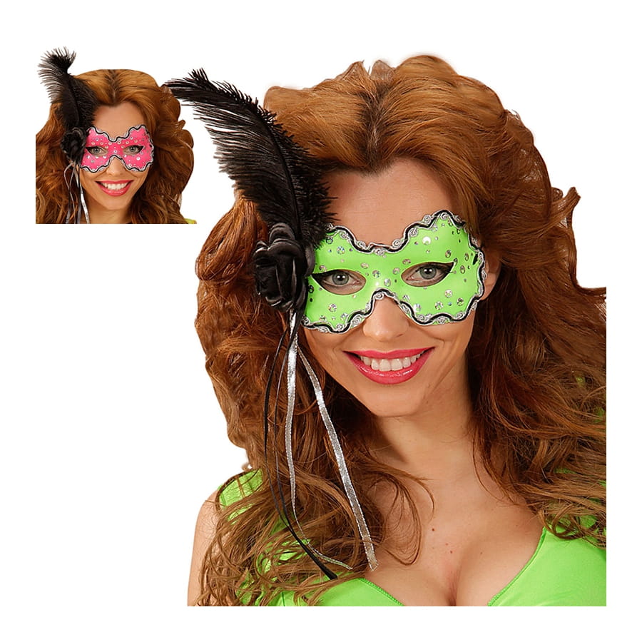 Optez pour un look plutôt coloré et flashy, et faites vous distinguer à première vue grâce a ce petit loup fluo avec plume noire.