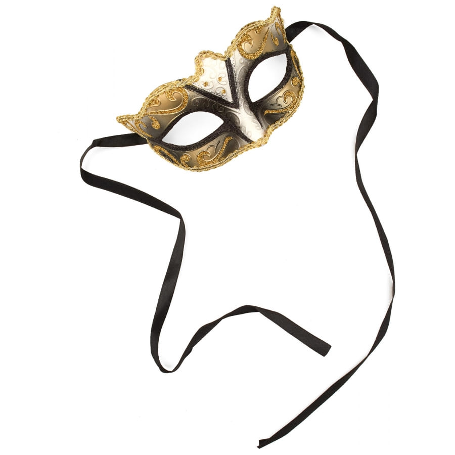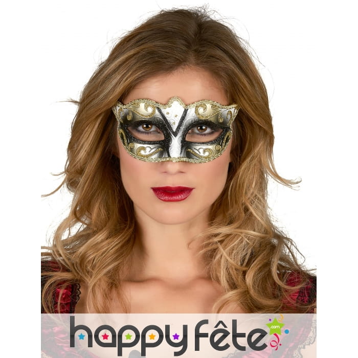 Remontez le temps et confondez-vous aux dames de la noblesse vénitienne du 18eme siècle, grâce à notre petit loup vénitien doré noir.