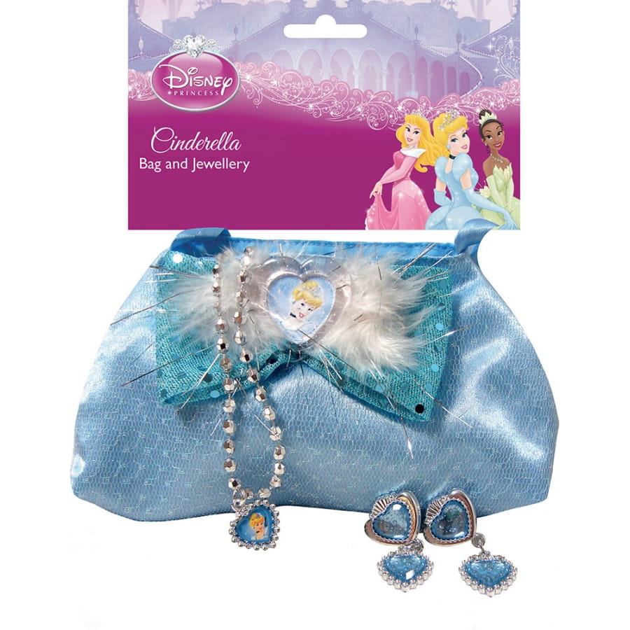 Accessoirisez votre déguisement de princesse grâce à ce kit fait d'un Petit sac à main, de boucles et du collier de Cendrillon.