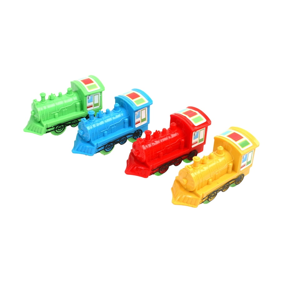 Tchou tchou !! Tous les petits garçons seront fans de ce petit train en plastique à rétro friction, et se rueront dessus pour organiser une course. L'article, faisant 8.5 cm, est disponible dans diverses couleurs vives, mais il vous sera livré selon la couleur disponible en stock. Le train est vendu à l'unité.