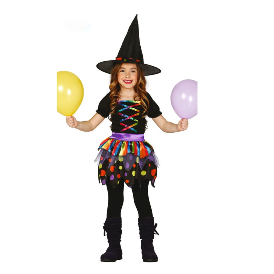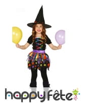 La petite robe noire colorée de sorcière pour enfant est la tenue idéale pour Halloween.
