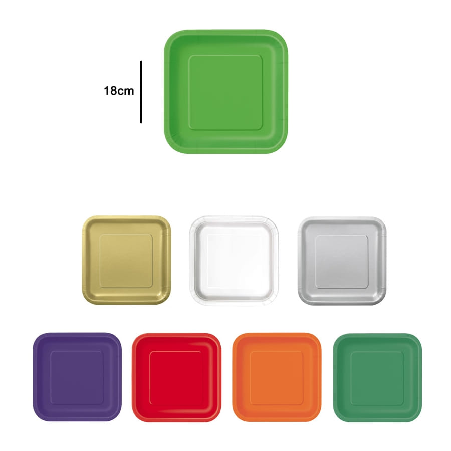 Pas besoin de sortir l'argenterie pour épater les amis ! Préférez ces petites assiettes carrées en carton de 17 cm de diamètre chacune pour leur côté pratique et unique. Vous aurez droit à un paquet de 16 assiettes avec différents coloris au choix : blanc, argenté, noir, or et bronze, vert émeraude, vert citron, violet, orange ou rouge.