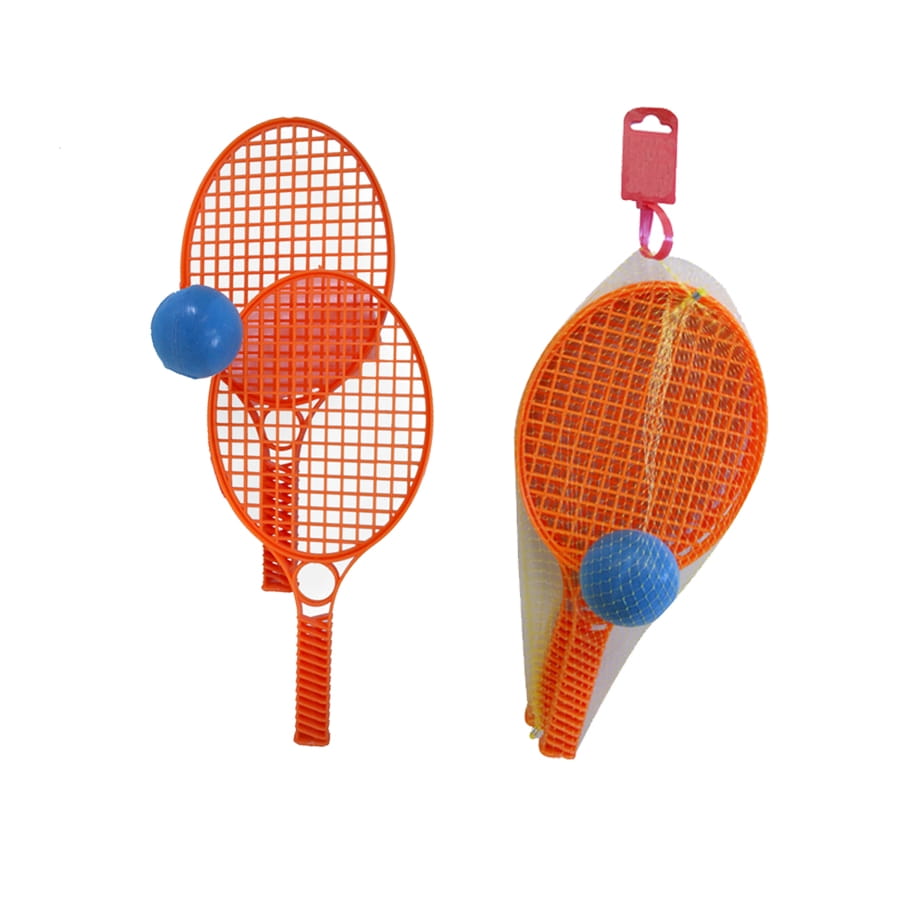 Equipez vous de ces 2 raquettes en plastique et de leur balle et amusez vous lors de vos sorties à la mer ou dans le jardin. L'ensemble contient deux raquettes de petit modèle de couleur orange et une balle de couleur bleue. Mais les couleurs peuvent varier suivant la photo. Toutefois, vous n'aurez pas le choix des couleurs lors de la commande.