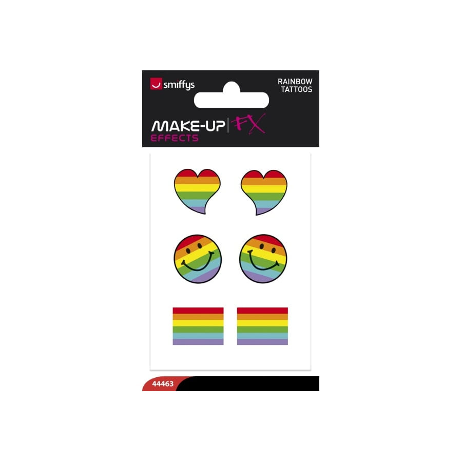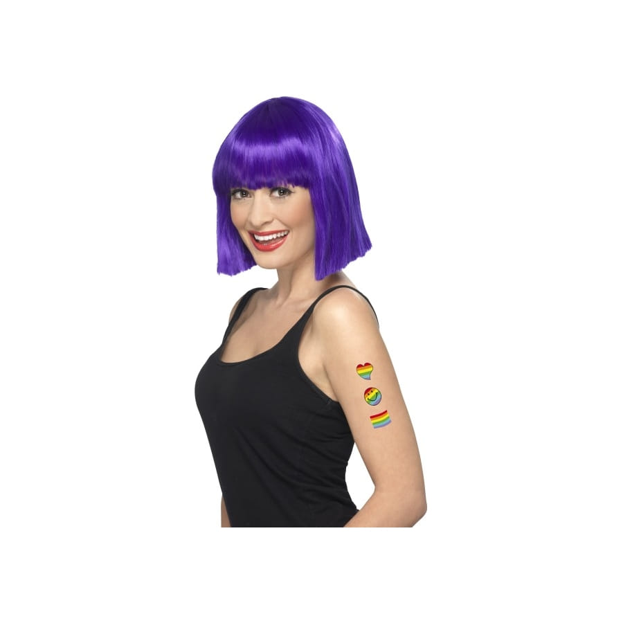Vivement la gay pride pour qu'on puisse se montrer en couleur arc-en-ciel. Ici, nous avons des petits tatouages gay pride d'une belle couleur arc-en-ciel rien que pour vous. Ces tatouages représentent un drapeau, un coeur et un smiley. Tout adulte consentant pourra les porter.