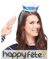 Le chapeau blanc de marin sur serre-tête en plastique est un accessoire pour femme.