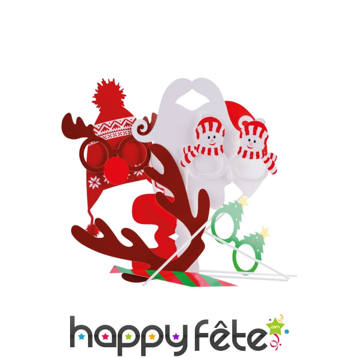 Ce kit photobooth contient au total 9 vignettes en carton représentant des éléments sur le thème de Noël.