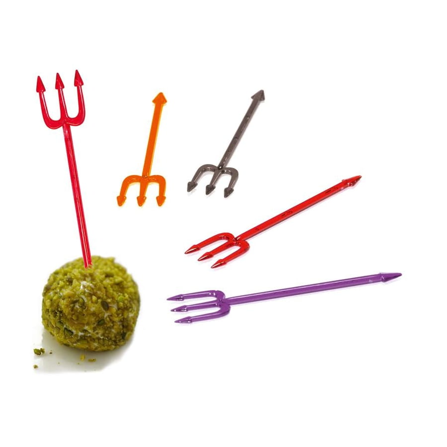 Voici encore une idée de génie pour réussir votre soirée d'Halloween ! Abandonnez l'idée des simples pics pour amuses-bouche et optez pour des pics en forme de tridents. Vous disposerez d'un pack de 20 pics, présentés en 4 coloris différents. Vous allez épater vos invités avec des petites fourches à trois dents pour leur ouvrir l'appétit ! Miam !