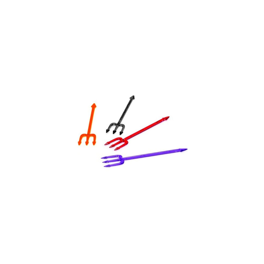 Les pics apéritif en forme de trident vendus par 20 sont en plastique.
