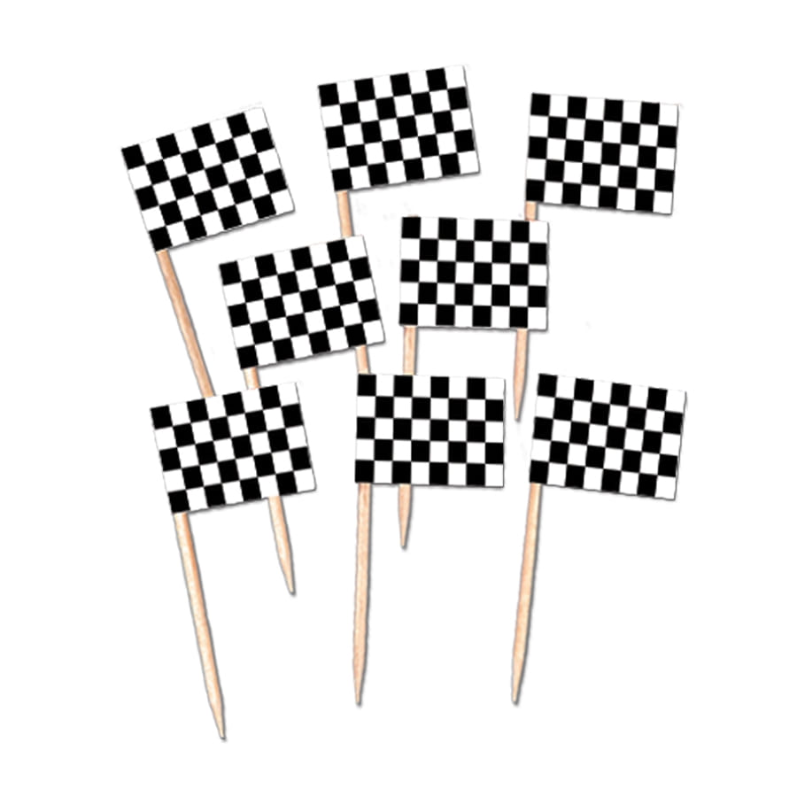 Durant les fêtes en tout genre, le thème passe aussi dans les assiettes. Des pics apéritifs damier noir et blanc vous sont proposés pour décorer vos plats.