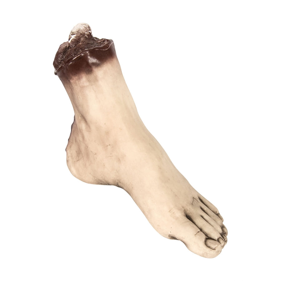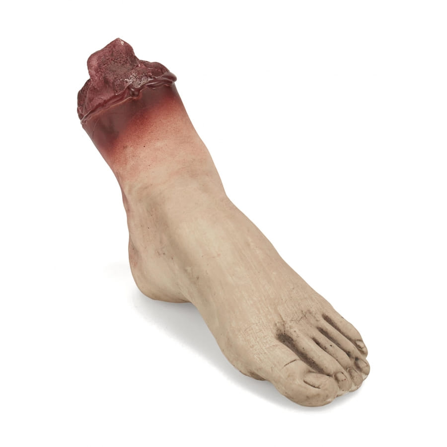 Le pied coupé en plastique souple est un ornement idéal pour compléter une décoration sur le thème de l'horreur à l'occasion d'halloween.