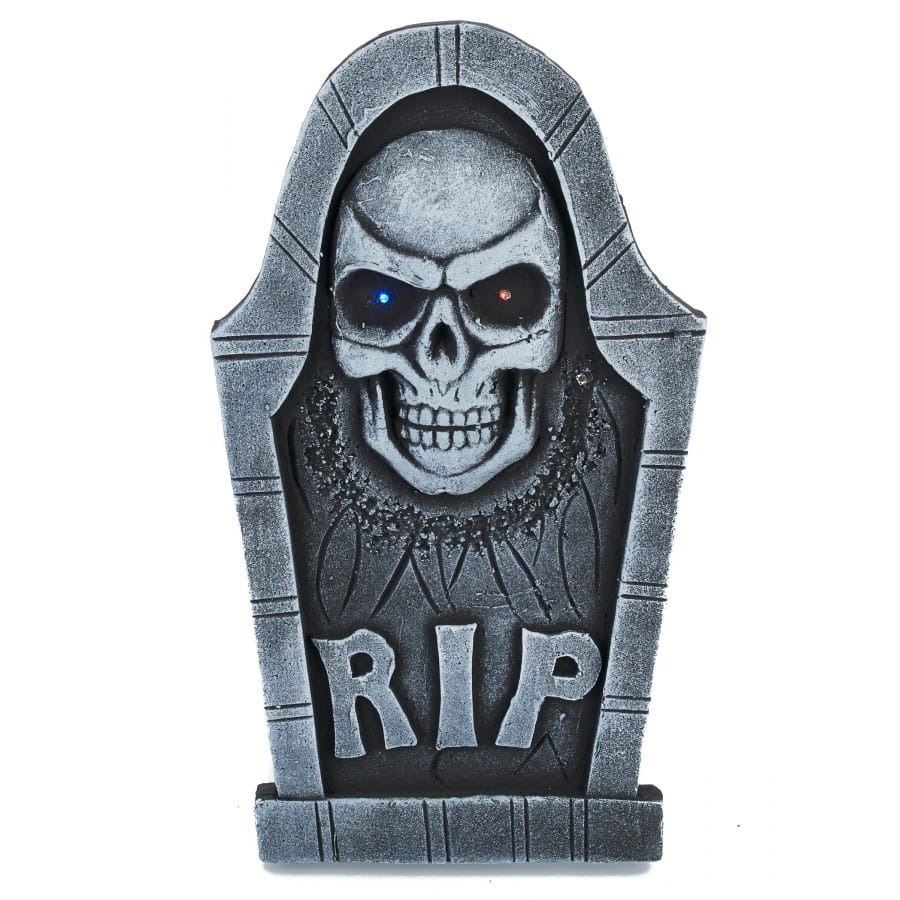 Faites de votre maison un lieu sinistre à l'occasion d'halloween grâce à cette Pierre tombale crâne lumineux de 53cm.