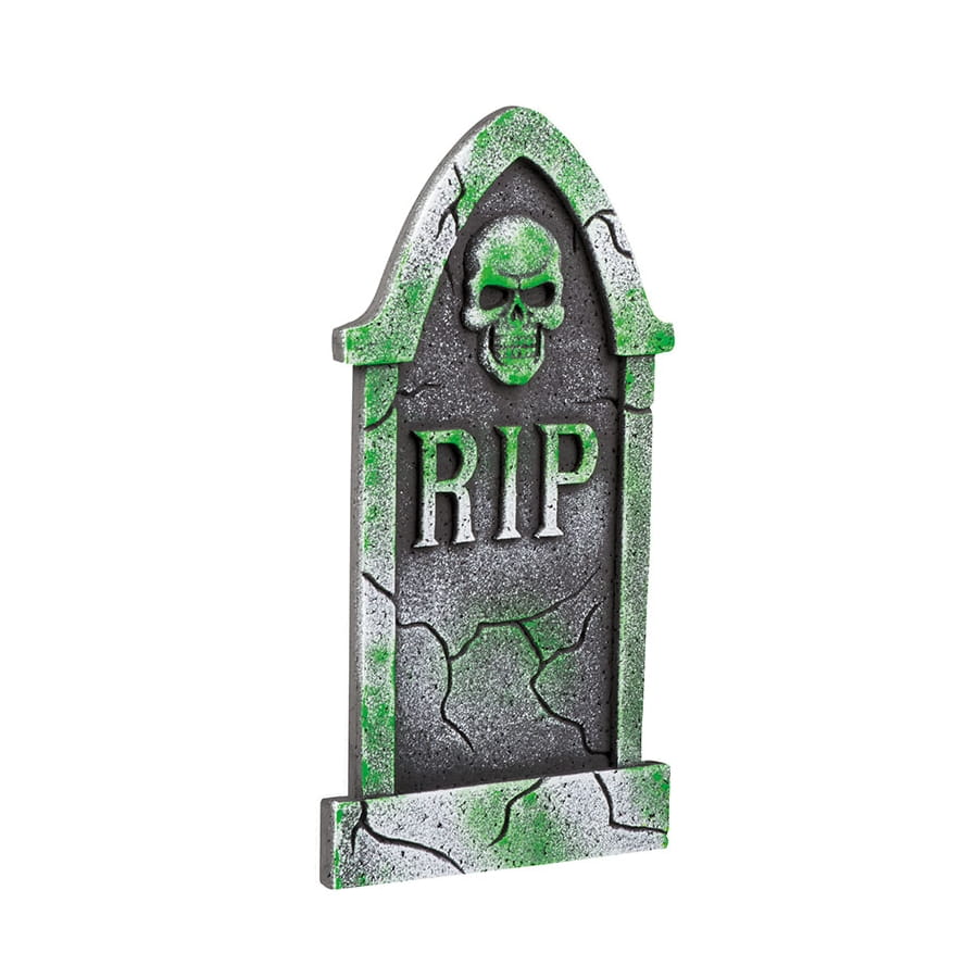 Plantez le décor pour une soirée Halloween terrifiante avec la pierre tombale effrayante RIP gris et vert, 40cm.