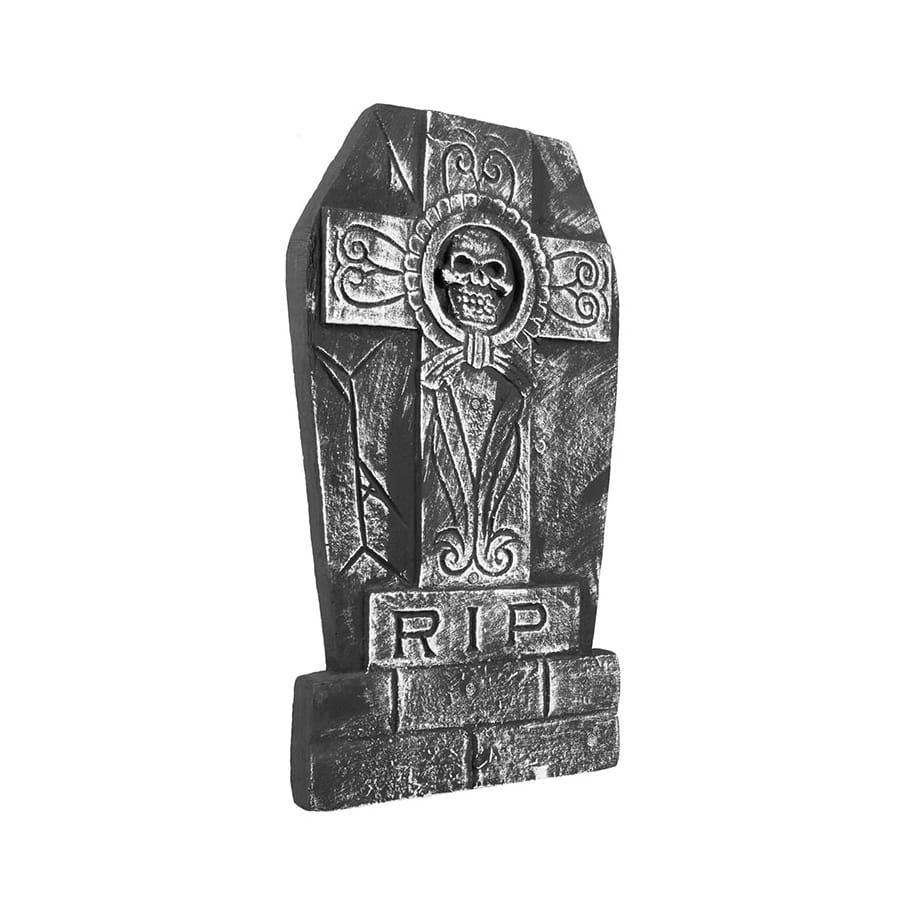 Épatez vos invités par une imagination à toute épreuve en renforçant le côté macabre de votre déco d'Halloween grâce à la pierre tombale grise RIP de 50 cm.