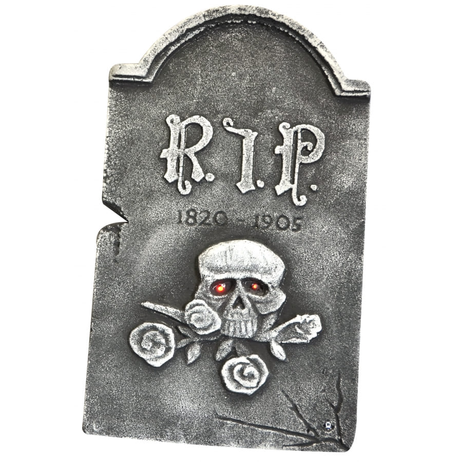 La nuit d'Halloween, les morts-vivants sortent de leurs tombes ! Justement, vous aurez une pierre tombale RIP à votre disposition pour décorer votre intérieur ou pour orner votre porte d'entrée. Elle est de couleur grise et mesure 53,5 cm. Ce modèle est non seulement très authentique, mais il émet également un son sinistre et un cri de loup dès qu'il entend du bruit, tout cela grâce à 2 piles AA. A noter que l'article vous sera livré sans piles.