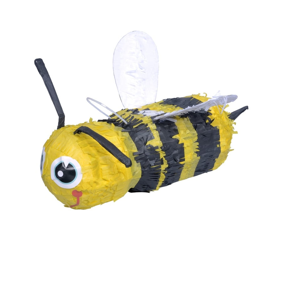 Cette pinata abeille est bien sûr de couleur jaune et noire et mesure 39 x 15 x 24 cm. A vous de la remplir avec des bonbons et des jouets car nous ne fournissons pas le contenu ni le bâton avec. Le jeu est simple, après l'avoir remplie, suspendez-la quelque part pour décorer le lieu puis lorsque les invités sont prêts, demandez-leur d'essayer de casser la pinata en la frappant à l'aide d'un bâton pour que le contenu tombe. Ce jeu est d'origine mexicaine.