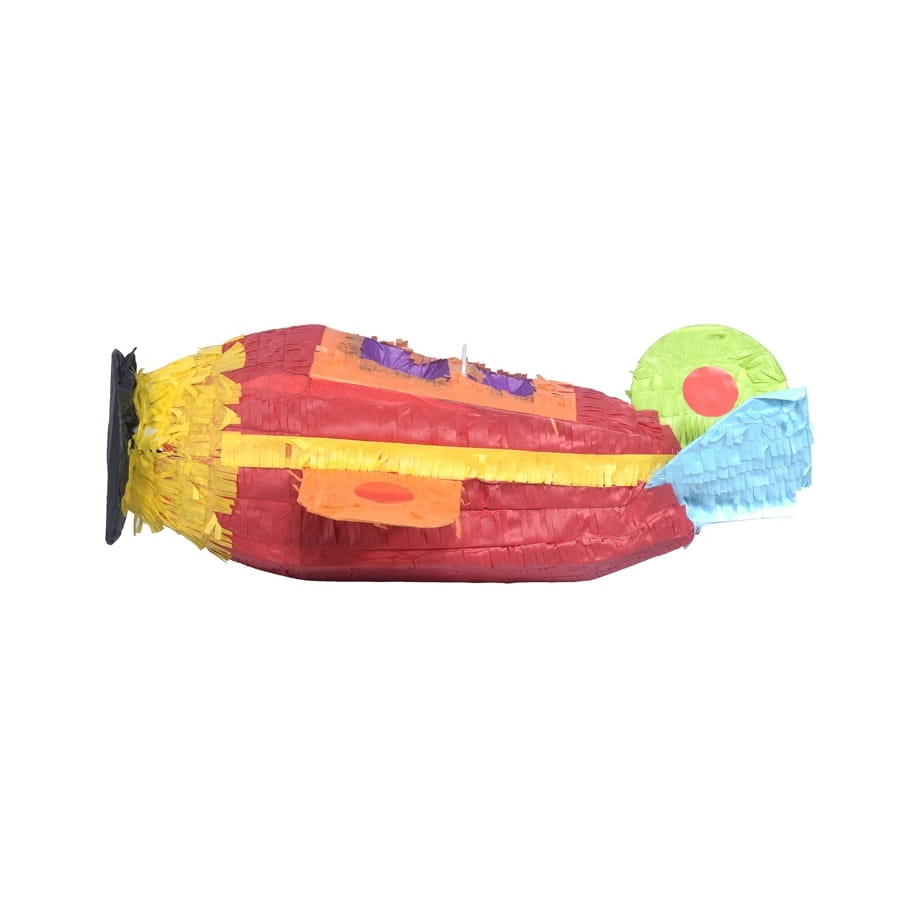 Vos invités vont se frotter les mains d'impatience dès qu'ils verront cette pinata avion multicolore suspendue chez vous. Cette pinata est vendue vide, sans le bâton. Elle est multicolore pour bien jouer son rôle de décoration et mesure 30 x 20 x 55 cm. Elle est à remplir de jouets et de bonbons pour qu'après l'avoir frappée avec leurs bâtons, vos invités soient gâtés.