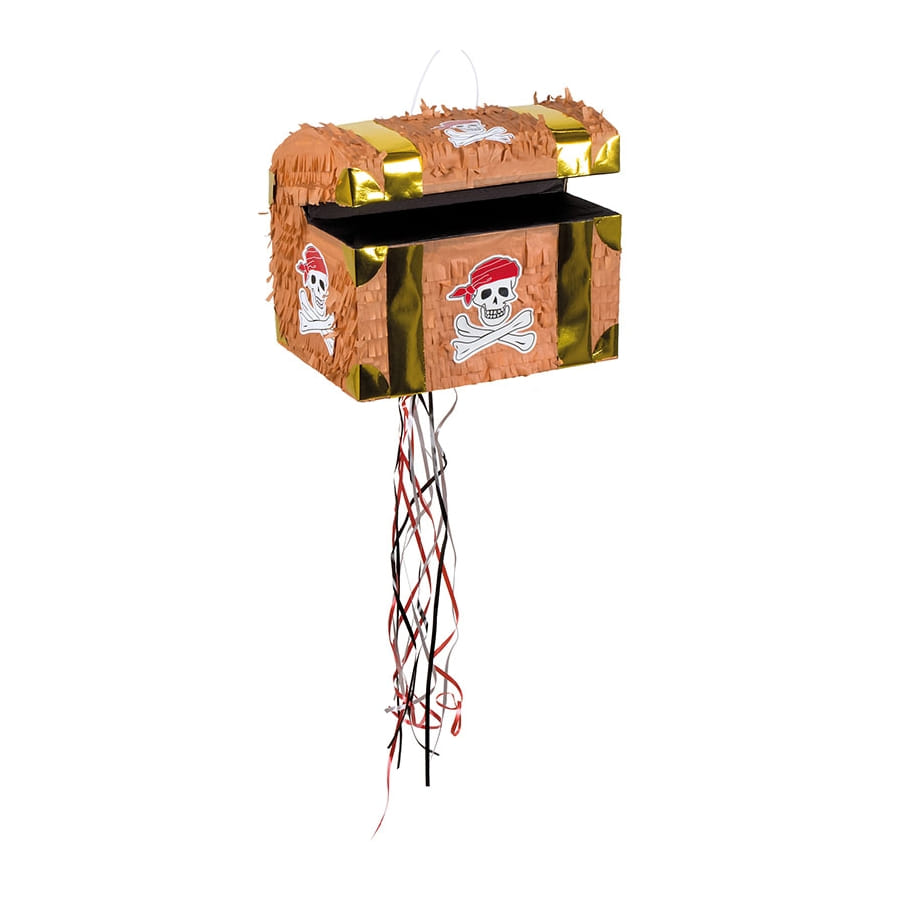 Entrez dans la tendance du moment, en vous offrant cette pinata coffre de pirate à tirer, 30 x 26 cm.