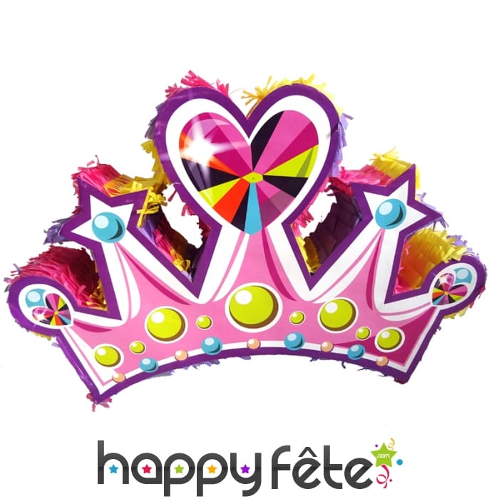 Si vous avez une petite fille qui rêve de devenir une princesse, réalisez son rêve en lui offrant cette pinata lors de son anniversaire. En forme de tiare de princesse avec un gros coeur au milieu, elle mesure 60 cm et est de couleur rose. Vous pouvez y entasser des jouets : des poupées, des dînettes, ou des sucreries, et quand le moment viendra, laissez votre petite princesse et ses convives taper dessus avec un bâton et une fois éclatée, les surprises tomberont en abondance. Cette pinata est livrée sans bâton.