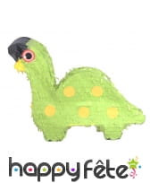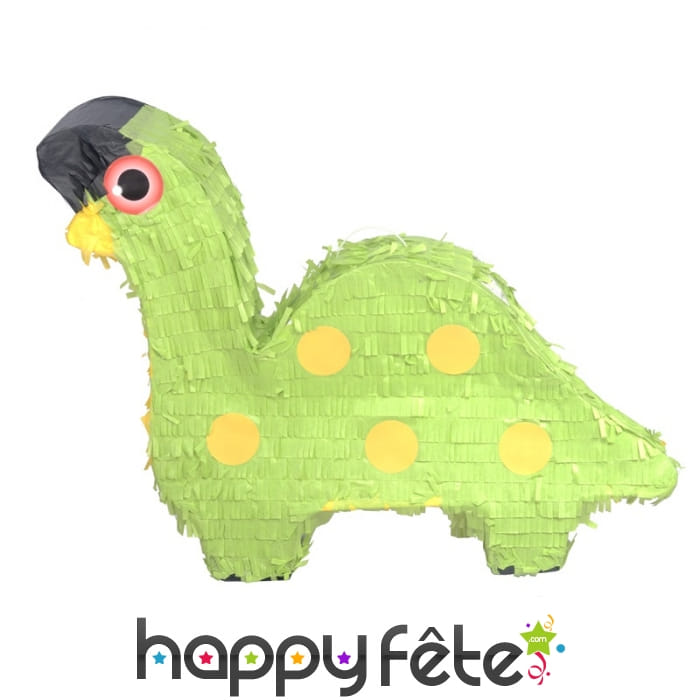 Faites de votre fête une réussite en y exposant cette pinata dinosaure vert. Ce dinosaure tout vert avec des pois jaunes mesure 39 x 15 x 24 cm. Le bâton et le contenu ne sont pas vendus avec. Remplissez-la avec des jouets et des bonbons puis suspendez-la et lorsque vos invités seront prêts, donnez-leur des bâtons et dites-leur de la frapper à maintes reprises pour que le contenu se déverse. Ils seront ravis de participer à ce jeu traditionnel mexicain.