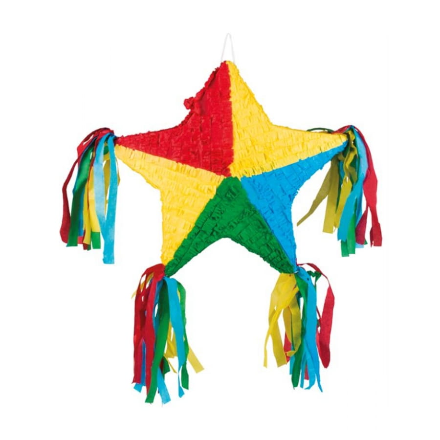 La pinata en forme d'étoile multicolore mesure 51 x 56 cm.