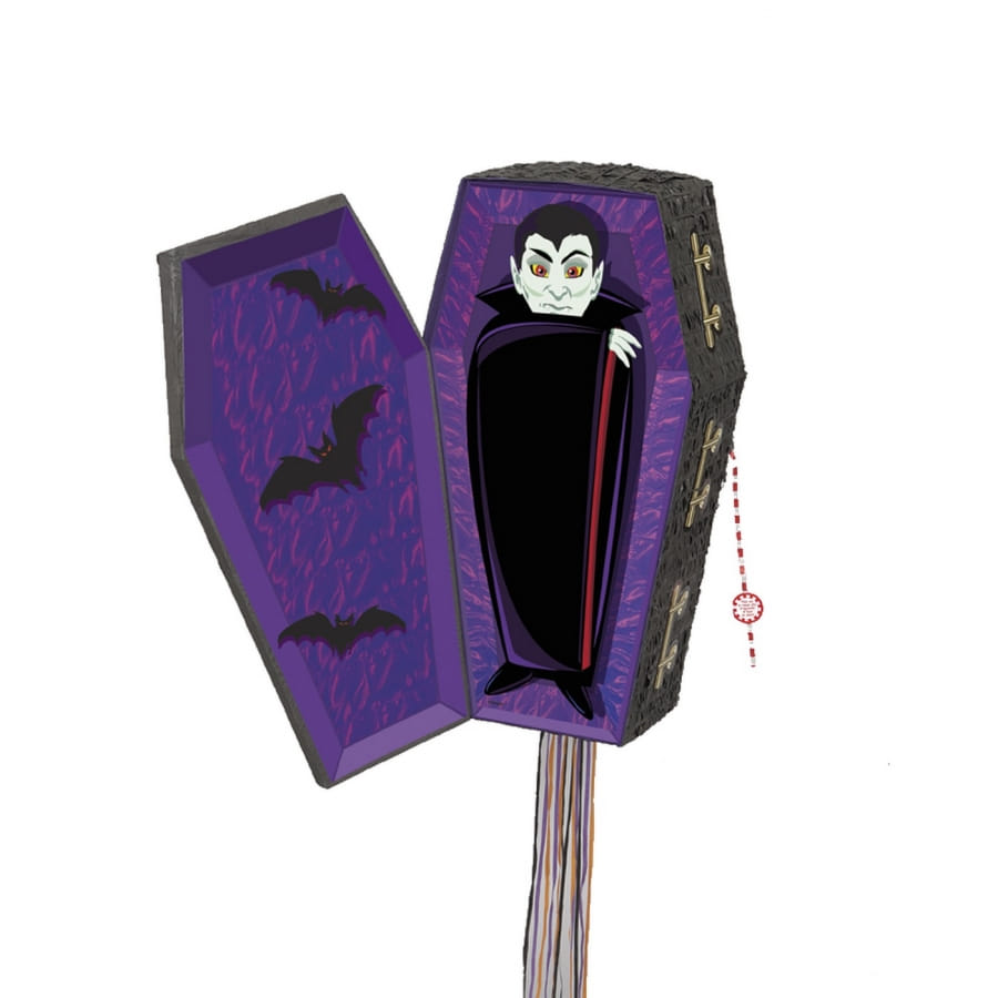 La pinata est un récipient que l'on remplit de friandises, de cadeaux ou encore des confettis. C'est un accessoire que l'on retrouve souvent dans les fêtes d'anniversaires. Ce pinata en forme de cercueil de vampire est conseillé pour amuser vos enfants à la soirée Halloween. C'est un récipient authentique dont la couverture est tout à fait délicate et facile à casser.