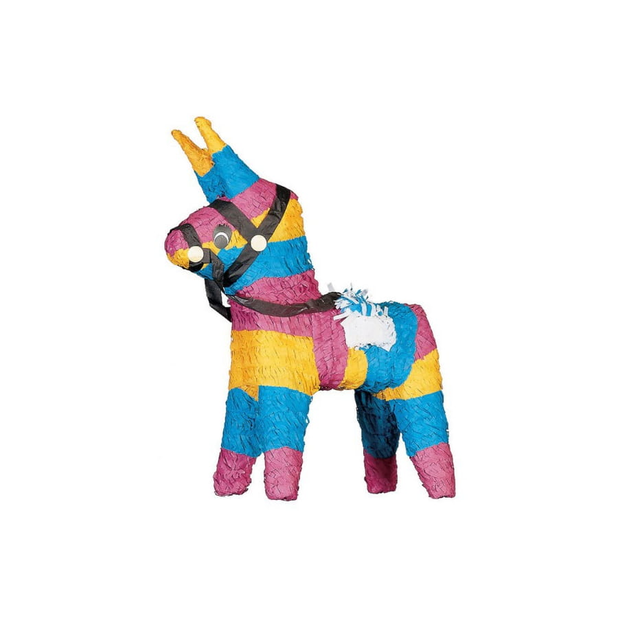 C'est l'heure de casser la piñata ! Les enfants attendent ce moment avec impatience pour récupérer des friandises. Cette piñata en forme de cheval multicolore peut renfermer bonbons, chocolats, jouets, confettis, etc. Elle est dotée d'une petite ouverture de 5 cm de diamètre. En forme de cheval, elle fait environ 25 cm de largeur, 50 cm de hauteur et 13 cm d'épaisseur. Elle constituera une parfaite attraction pour un goûter d'anniversaire. Le principe est simple : les enfants devront essayer de casser la piñata les yeux bandés pour prendre possession des friandises.