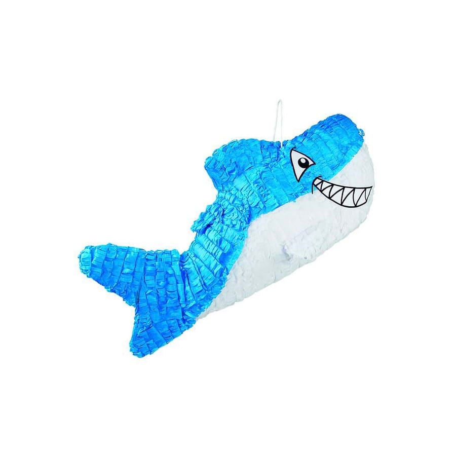 La pinata en forme de requin bleu de 60 cm est en carton.