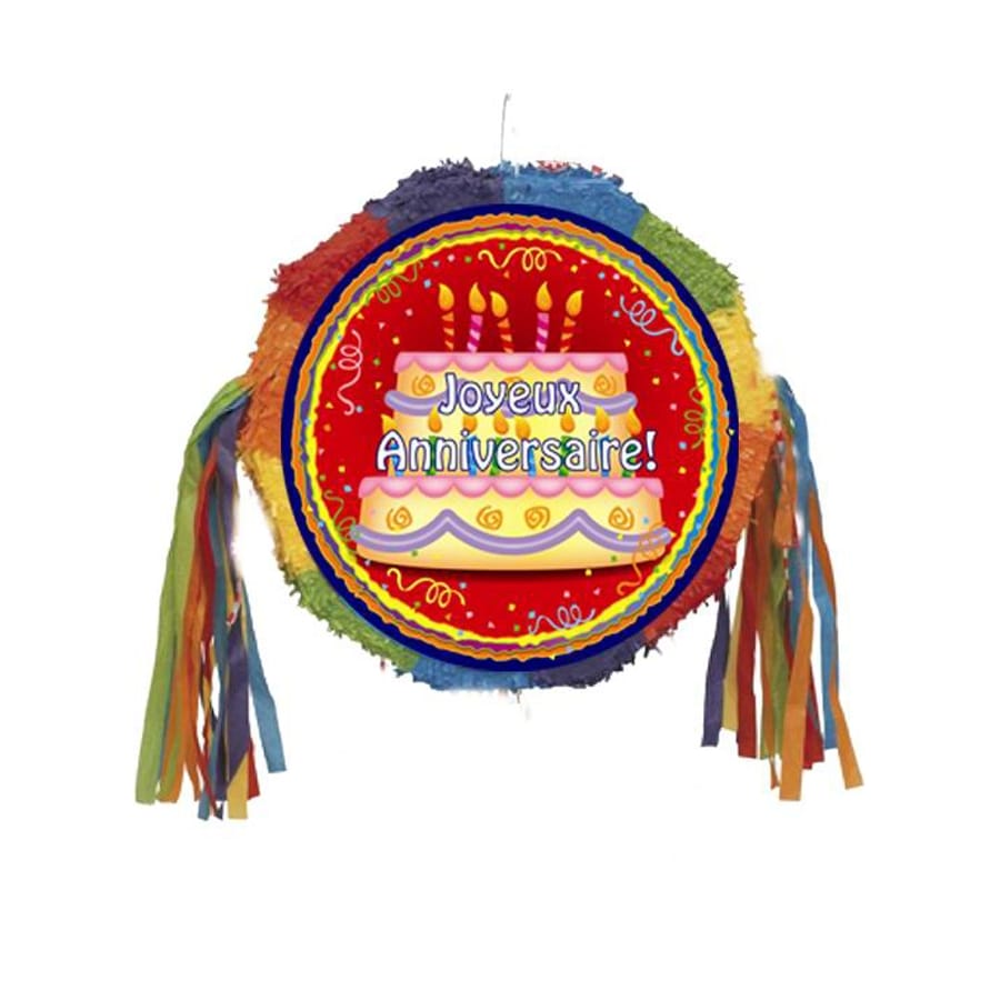 A part le vrai délicieux gâteau et les petits cadeaux que vous offrirez à votre enfant à l'occasion de son anniversaire, vous pouvez lui offrir, en complément, ce beau gâteau virtuel : une pinata gâteau d'anniversaire de 50 cm. Elle est superbement décorée par l'image d'un gâteau avec des bougies et l'inscription "Joyeux anniversaire". C'est sûrement un moment dont il se souviendra longtemps. Mais à quoi ça sert ? Remplissez cette pinata gâteau de bonbons et d'autant d'autres surprises (petits jouets, etc.). Ensuite, demandez aux enfants de la détruire à l'aide d'un bâton pour y faire ressortir son contenu surprise.