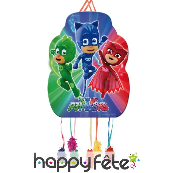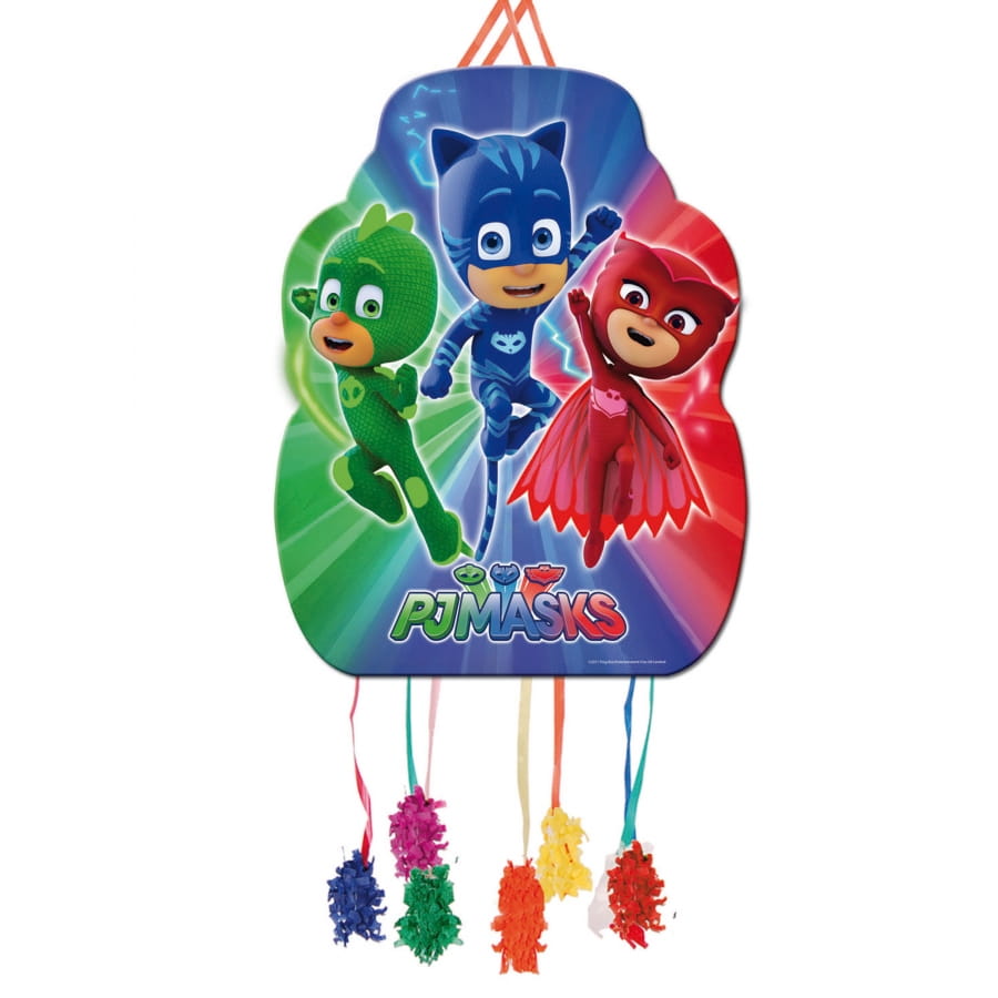 • Pinata de 36 x 46 cm imprimée les Pyjamasques et dotée de 7 ficelles (vendue vide).