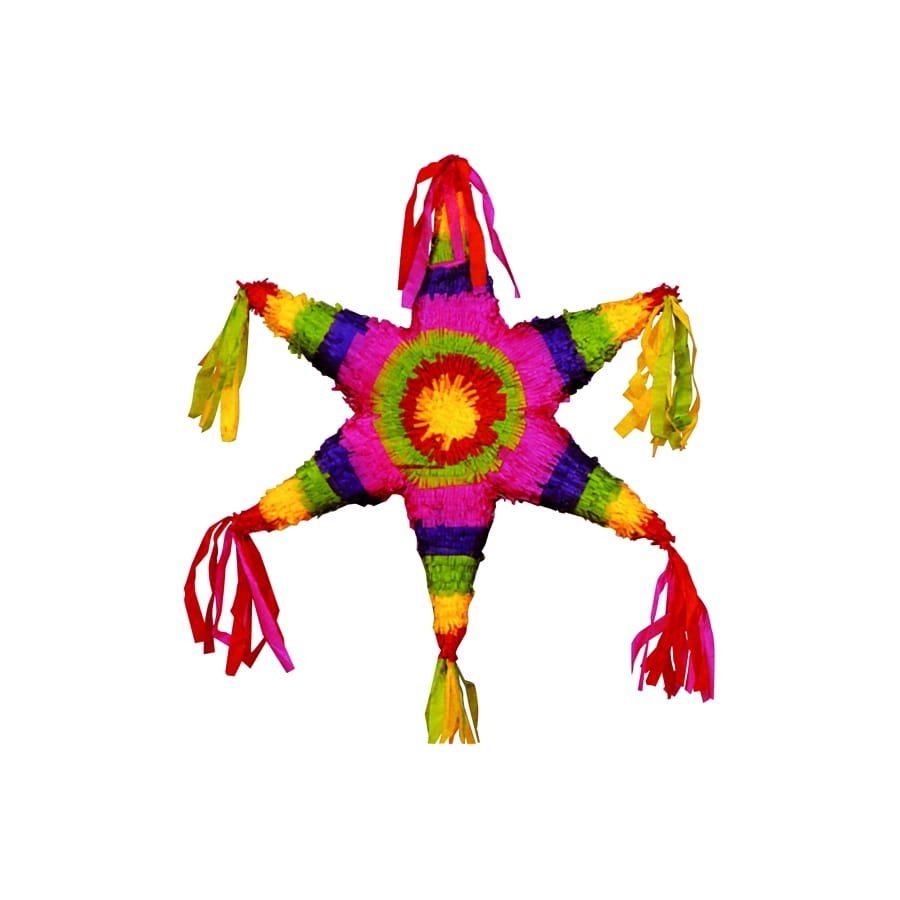 Piñata multicolore en forme de Mexican Star. La taille de cette piñata est de 55 centimètres. Utilisez-la pour faire plaisir aux enfants pendant un anniversaire!