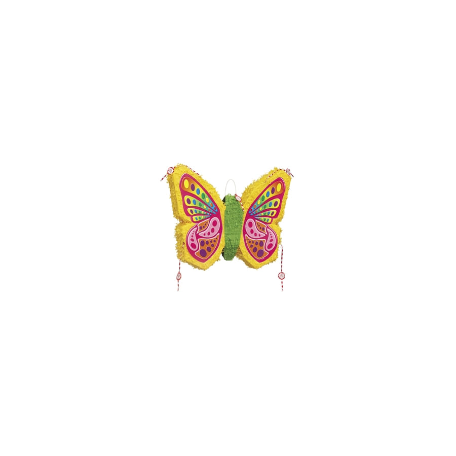 Le papillon émerveille les coeurs par ses couleurs. Laissez-vous emporter dans une atmosphère nouvelle et amusez-vous avec cette piñata papillon multicolore. Il s'agit d'un modèle d'environ 49 cm x 60 cm de couleur jaune. De ravissants motifs multicolores sont dessinés sur les ailes. La piñata papillon est idéale pour animer l'anniversaire de votre petite princesse.