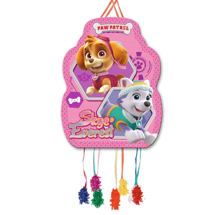 La pinata représentant Stella et Everest de Pat Patrouille avec des franges est en carton.