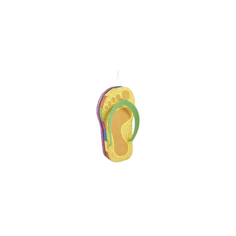 Découvrez une tong spéciale qui dissimule bien des surprises ! La piñata tong géante est principalement de couleur jaune avec une bride verte et des côtés colorés. Elle est aussi agrémentée d'une marque de pied imprimée dessus. Cette piñata au look holidays fait environ 61 cm x 30 cm de dimension.