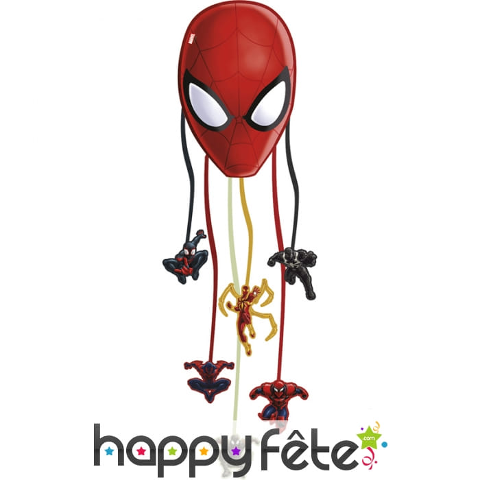 Mettre de l'ambiance à un anniversaire n'est jamais facile, amusez-vous avec les enfants avec ce pinata visage de Spiderman à tirer, sous licence Spiderman. C'est une tête de Spiderman creuse à suspendre, elle dispose de 6 ficelles multicolores pendues avec diverses images de Spiderman sur chaque bout. Il vous faut remplir la tête de friandises et de petits jouets, et les yeux cachés, un enfant doit tirer sur une ficelle pour faire tomber le contenu de la tête. La pinata est vendue vide.