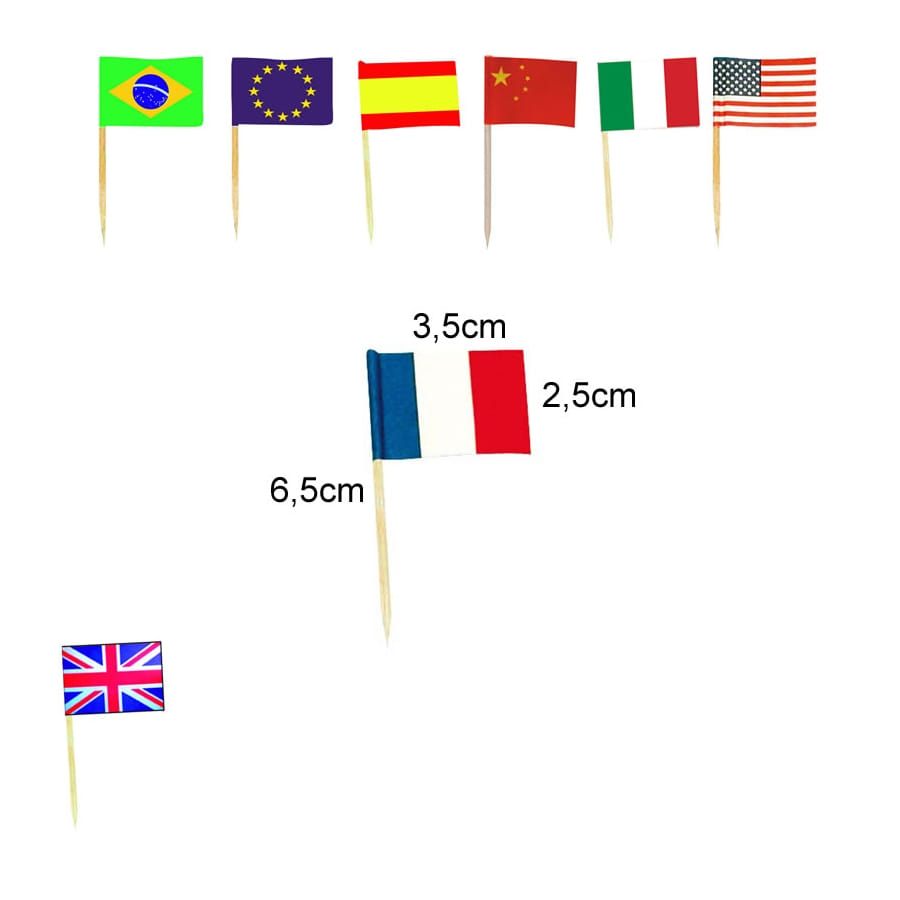 La famille est réunie au complet pour supporter son équipe favorite ! Distribuez ces mini-drapeaux brésiliens à tout le monde afin d'encourager les joueurs. Arborant les couleurs de différents pays, ces petits drapeaux de 2.5 cm x 3.5 cm de mesure sont chacun fixés sur un pique en bois de 6,5 cm de long. Vous disposerez d'un sachet contenant 50 mini-drapeaux. Nous vous suggérons le même modèle pour la France, l'Italie, le Brésil ou les USA.
