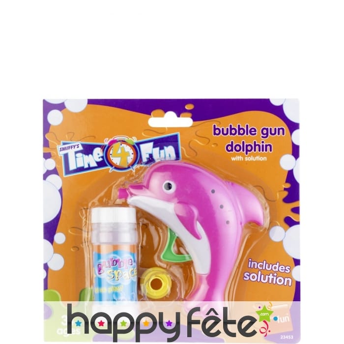 Pour que leur gouter d'anniversaire soit réussi pourquoi ne pas vous en servir de ce pistolet à bulles. Ils seront agréablement ravis de jouer et de faire des bulles. Le pistolet à bulles est en forme de dauphin de couleur rose. Il y a la solution pour faire des bulles.