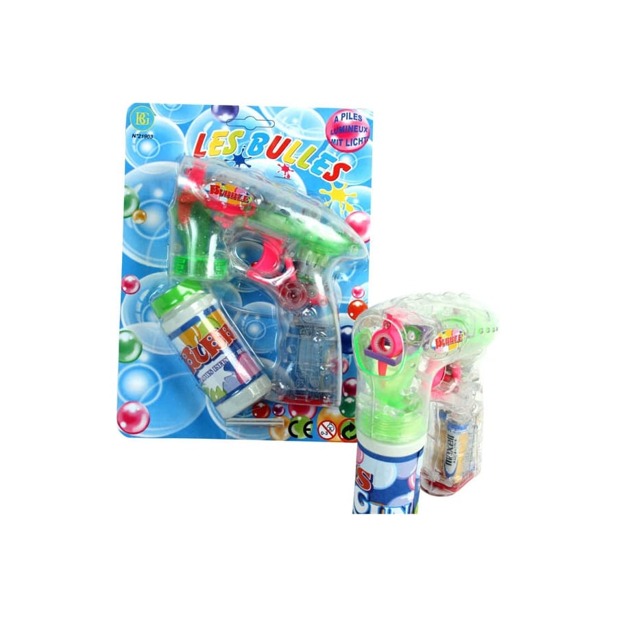 Faites de votre journée une journée pleine de bulles! Pour cela, nous vous conseillons d'utiliser ce joli pistolet à bulles lumineux. C'est sûr, cela impressionnera vos petits gamins. Le pistolet mesure 18 cm et est livré avec une bouteille de liquide à bulles. Vous n'aurez qu'à mettre des piles dedans et il sera prêt à l'emploi. Divers coloris sont disponibles, mais lors de la commande, vous n'aurez pas le choix de la couleur.