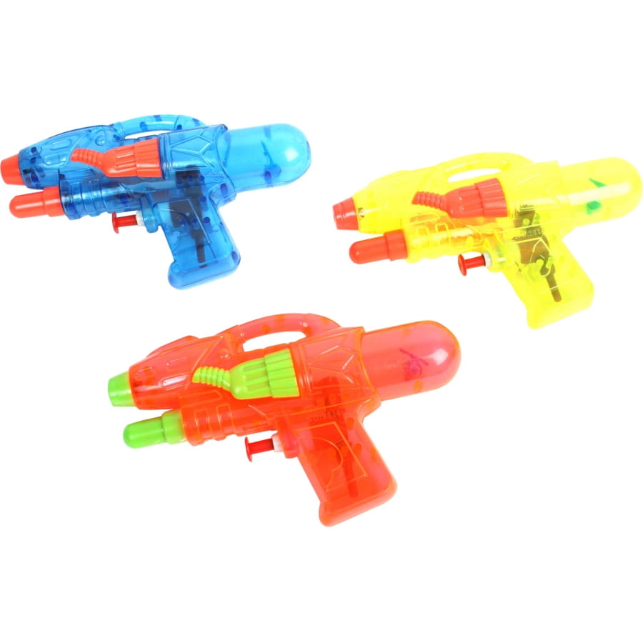 Pistolet à eau avec double jet et 2 réservoirs, mesurant 16 centimètres de long. Au moment de passer la commande, vous ne pourrez choisir ni le modèle ni la couleur des fusils. Vous recevrez le pistolet bleu, jaune ou rouge. Ce jouet est parfait pour votre garçon lors d'anniversaires.