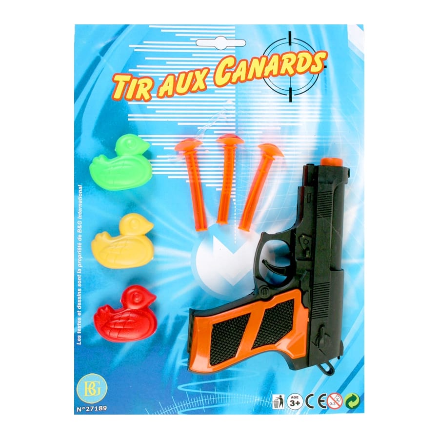 Les garçons sont toujours prêts pour de l'action ! Cet ensemble de jouet constitue un équipement complet pour faire un jeu de tir aux canards. Il est composé d'un pistolet à fléchettes, de trois flèches et de trois petits canards multicolores. Cet attirail sera également parfait pour entrer dans la peau d'un officier de police !