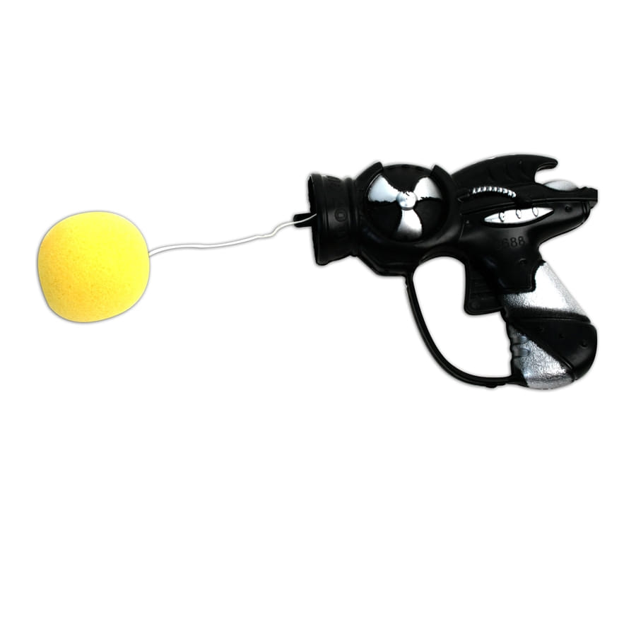 Les enfants vont adorer ce pistolet lance balle, puisqu’il est très différent de ces simples pistolets qui ne font même pas un bruit. Celui-ci propulse vraiment une balle, mais une grosse balle jaune qui ne pourra blesser personne ! C’est pour ça qu’il est idéal pour les enfants qui rêvent de Western, surtout vos petits garnements. L’ensemble mesure 12,5 cm, le pistolet est noir et la balle est jaune.