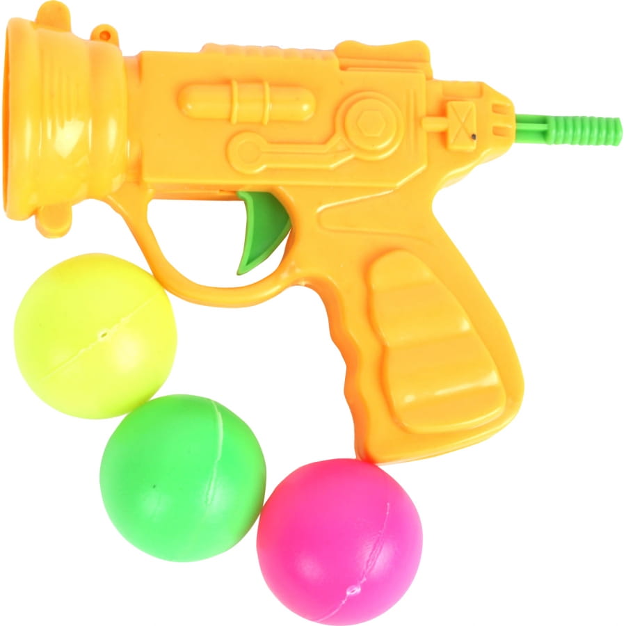 Pistolet lance-balles, livré avec 3 balles. Les balles sont en plastique et de taille moyenne. Lors de la commande, il vous sera impossible de choisir ni le modèle ni la couleur des accessoires. Vous recevrez le set comme présenté. Votre enfant le trouvera particulièrement amusant lors d'un anniversaire où tous ses camarades seront présents.