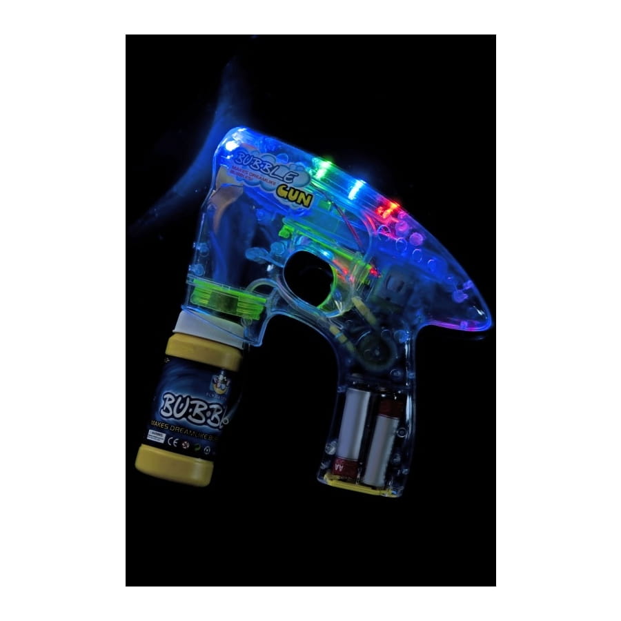 Pistolet multicolore lumineux à bulles colorées, pour garçon. Cet accessoire est livré avec flacons et piles et ne convient pas aux enfants de moins de 3 ans. Laissez votre enfant faire de jolies bulles grâce à ce magnifique pistolet.