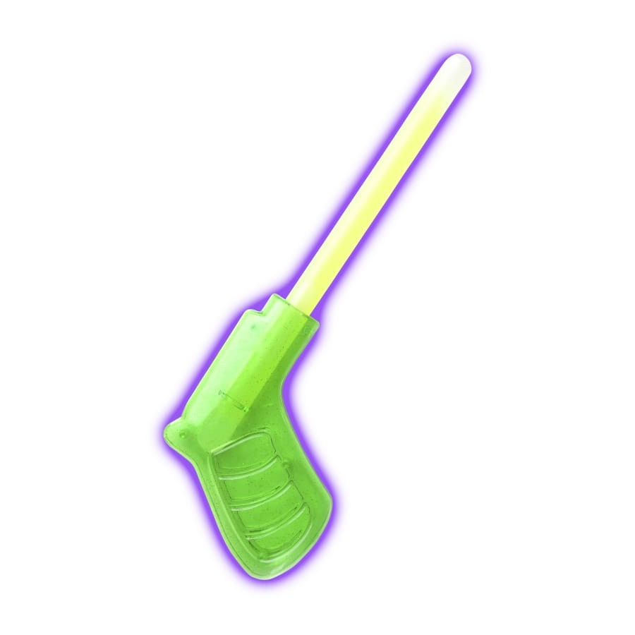 Pistolet lumineux de couleur jaune et verte pour garçon. Cet accessoire mesure 25 centimètres de long et ne convient pas aux enfants de moins de 3 ans. Vous devrez casser le pistolet pour qu'il brille. Ajouté à une tenue de science-fiction ou futuriste, ce pistolet sera parfait!