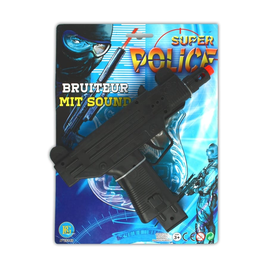 Si vous voulez que l'on prenne au sérieux votre déguisement de commando furtif ou de militaire en mission spéciale, il faut que vous ayez avec vous les bons accessoires qui valoriseront votre déguisement. Ce pistolet mitraillette bruiteur fait partie de ce genre d'accessoire. Il mesure 22 cm et est entièrement de couleur noire. Et surtout, il fait des étincelles lorsqu'on l'utilise.