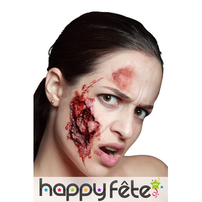 La plaie béante et boursouflée en latex est une fausse blessure à appliquer sur la peau afin de créer un maquillage effroyable et réaliste.