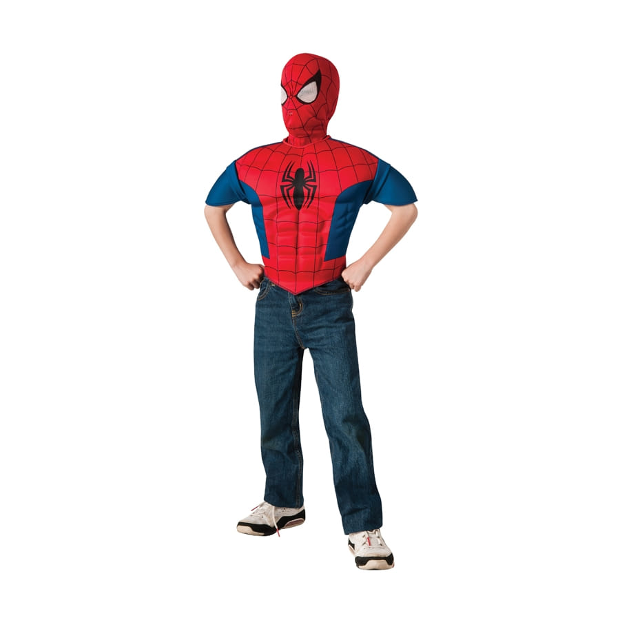 Comme tout super héros qui se respecte, Spiderman a lui aussi son propre costume. L'homme-araignée vous confère son style vestimentaire à travers cet ensemble plastron et cagoule de Spiderman pour enfant. Ce modèle destiné aux petits garçons est sous licence Spiderman. Il s'agit d'un plastron rouge et bleu avec imprimés araignée et toile d'araignée. Il a été fabriqué en mousse souple avec torse en 3D rembourré. Vous y distinguerez notamment des abdominaux bien tracés. Une cagoule de couleur assortie accompagne le plastron pour former un ensemble très réaliste. Un jean ou un pantalon noir feront l'affaire pour fignoler la tenue. Le garçon araignée va enfin pouvoir jouer pleinement son rôle de justicier grâce à cet article inédit !