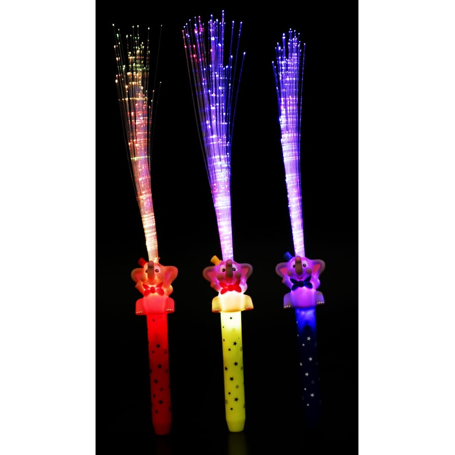 Pour une fête sur le thème safari ce plumeau en fibre optique multicolore avec support en forme de tête d'éléphant pour fille ou garçon. Le plumeau change continuellement de couleurs, pour le plus grands bonheur des enfants. Vous pourrez l'utiliser comme décoration de table pour une fête d'anniversaire basée sur un thème africain.