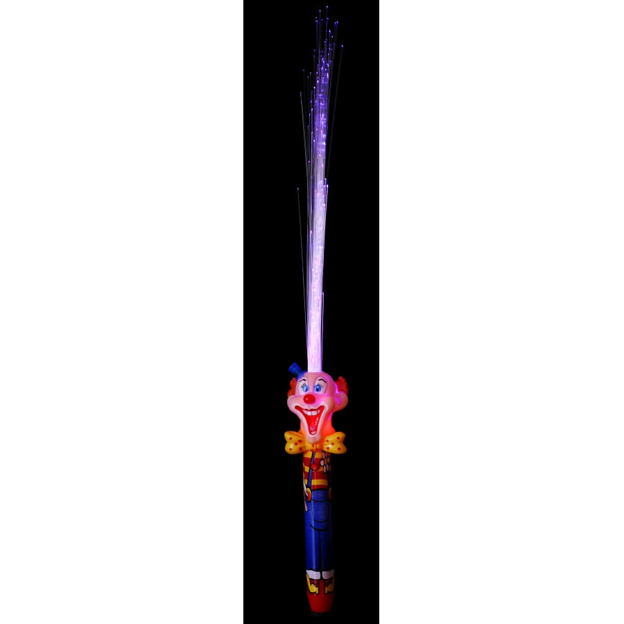 Plumeau en fibre optique diffusant une lumière multicolore pour garçon ou fille. Le support est en forme de tête de clown. Cet accessoire est parfait pour créér une ambiance festive lors d'une fête d'anniversaire pour enfants.