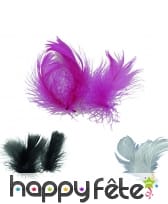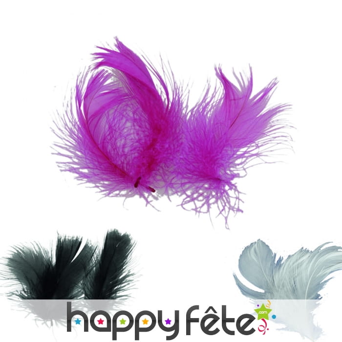 Douce, légère et délicate, la plume confère un certain charme à une tenue de danseuse de cabaret. Découvrez le lot de plumettes de 7cm destiné à agrémenter un déguisement style années 20-30. L'article est formé par plusieurs petites plumes d'environ 7 cm de dimension et de couleur blanche, noire ou rose fuchsia. Les plumettes peuvent aussi être employées à titre décoratif.